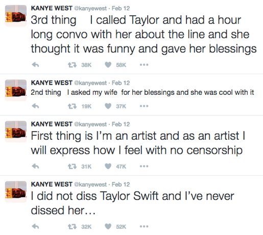 Taylor later told ABC radio that Yeezy had called her to apologize. “Kanye did call me and he was very sincere in his apology, and I accepted that apology,” she said.
